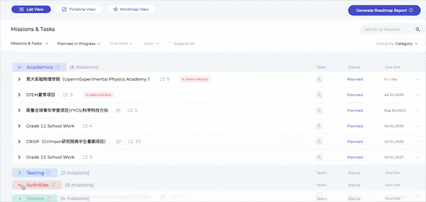 App 还能自动提醒关键时间点,从比赛报名到文书提交都清晰可见,家长也能通过中文进展报告实时了解孩子的节奏,无需频繁追问。